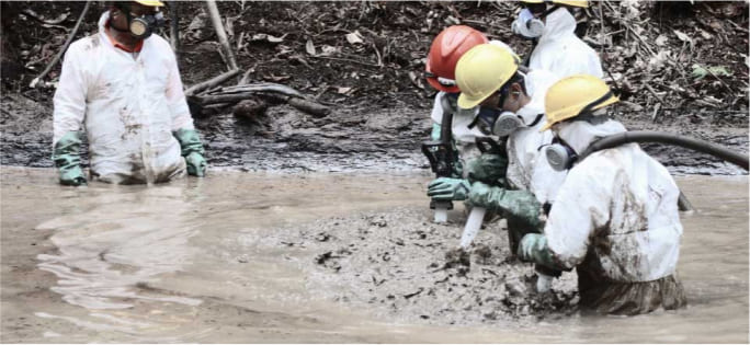 Asistencia y limpieza de derrames de hidrocarburos y de lípidos en cuerpos suelo y agua